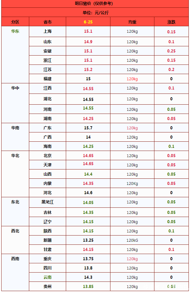 从最新数据显示,受屠企调价收猪,预计,6月25日,外三元瘦肉型标猪价格出栏均价在14.37元/公斤,后市关注购销情绪的变化!