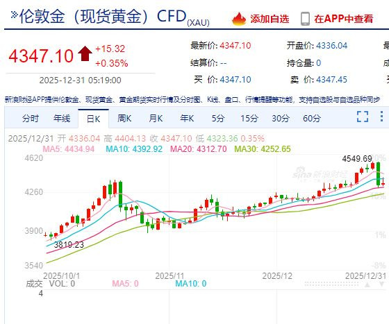 现货黄金报4347.10美元/盎司,涨幅0.35%,盘中一度涨超1.5%。